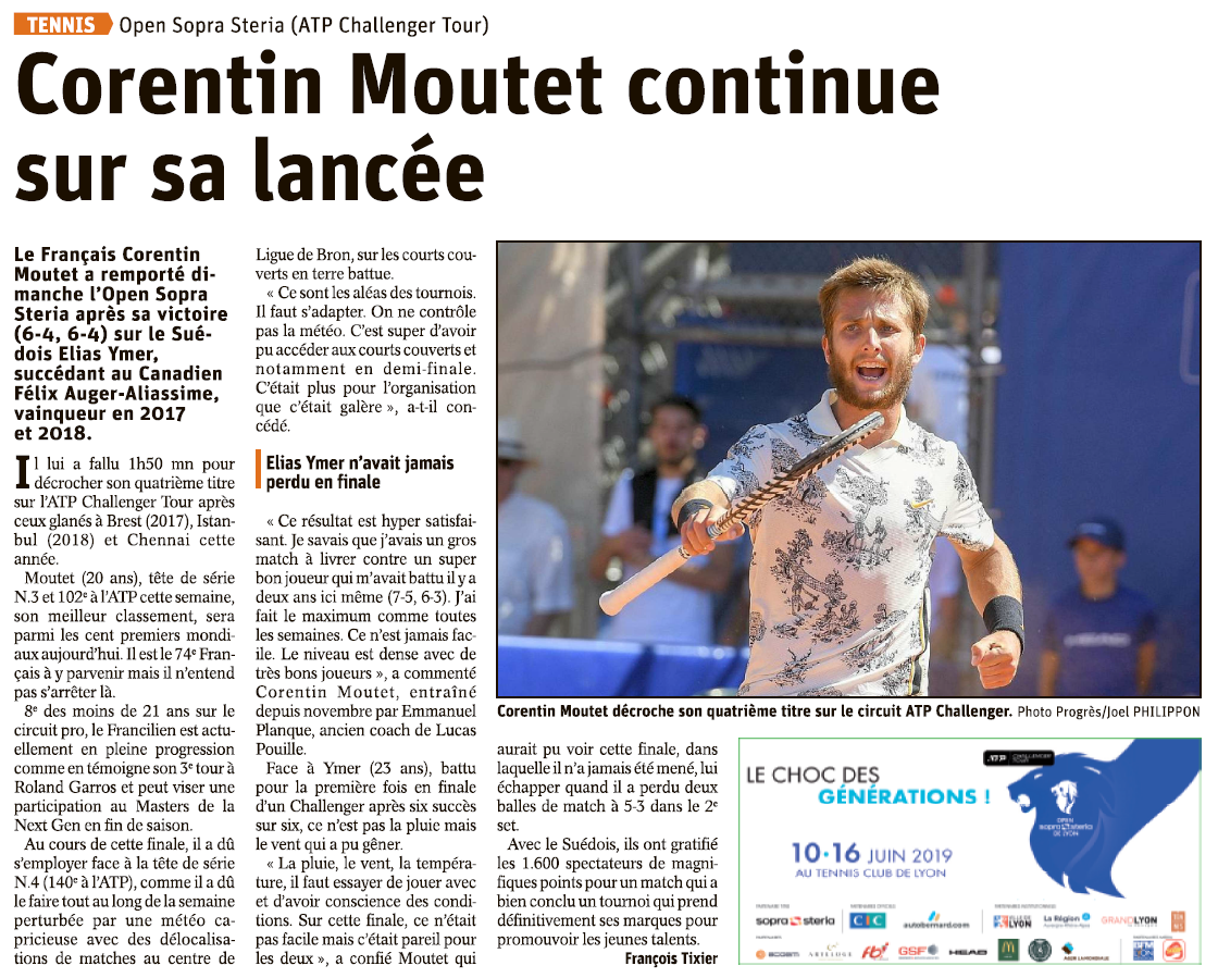 2019 : Corentin Moutet, premier vainqueur Français